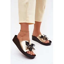 Kožené dámské pantofle s ozdobou model 22133798 Zlaté - S.Barski