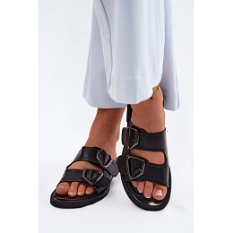 Kožené dámské pantofle s přezkami Vinceza 62304 Černé