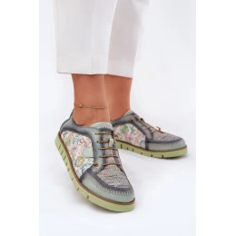 Kožené dámské polobotky s vzorem model 21692637 zelené - Maciejka