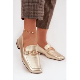 Kožené dámské mokasiny s ozdobným detailem model 22031810 zlaté - D&A