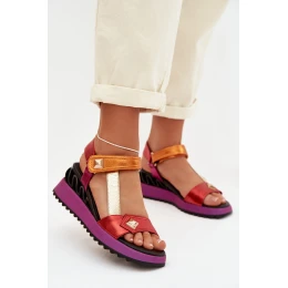 Kožené dámské sandály na platformě model 22028030 Multikolor - D&A