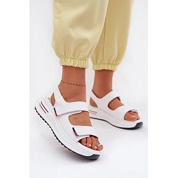 Kožené dámské sandály na platformě na suchý zip bílé model 22095050 - EVENTO