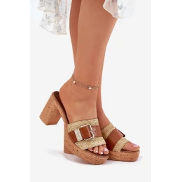 Skórzane Klapki Damskie Na Słupku Z Klamrą I Plecionką Zazoo 40459 Brązowe