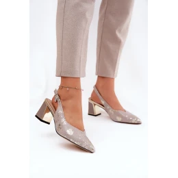 Skórzane Sandały Damskie Na Słupku Ze Szpiczastymi Noskami Vinceza 66733 Złoto-Srebrne