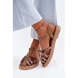 Kožené dámské sandály Ploché s Pásky Maciejka K7442-04 Béžové