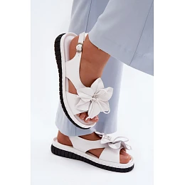 Kožené dámské sandály s ozdobným květem model 22125980 Bílé - VINCEZA