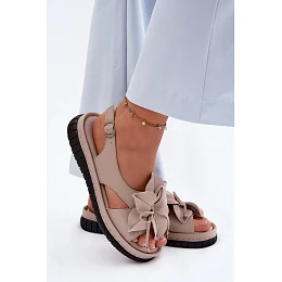 Kožené dámské sandály s ozdobným květinovým model 22125987 Béžové - VINCEZA