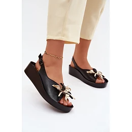 Kožené dámské sandály s ozdobou model 22133641 Černé - S.Barski