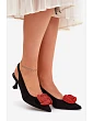Eleganckie czółenka damskie, wykonane z naturalnego zamszu, to połączenie subtelnej stylizacji z ponadczasową elegancją. Ich szpiczaste noski optycznie wysmuklą nogi, a aplikacja róży subtelnie zdobi przód. Smukły obcas szpilka i odkryte pięty tworzą zmysłowy, ale jednocześnie klasyczny akcent. Te czółenka będą doskonałym wyborem na wieczorne spotkania czy niezwykłe okazje. Przy wyborze rozmiaru prosimy sugerować się tabelą rozmiarów.