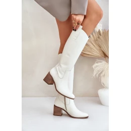 Kožené Kolena Na Podpatku Bílé Zazoo model 21682140 - Boto