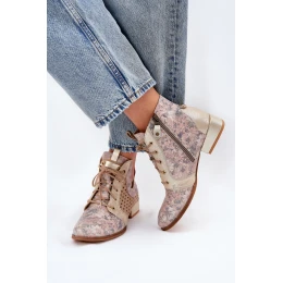 Skórzane Botki Trzewiki Maciejka 05541-04 Beżowo-Złote