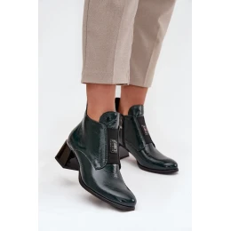Skórzane Lakierowane Botki Na Klocku Z Ozdobnym Detalem Ocieplane Zazoo 60560 Ciemnozielone