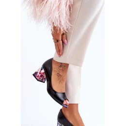 Skórzane Czółenka Z Ozdobnym Obcasem Lewski Shoes 2608/K Czarne