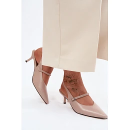 Dámské lodičky s otevřenou patou z přírodní kůže jsou elegantní a nadčasovou volbou pro výjimečné příležitosti. Klasický střih s špičatými, zakrytými špičkami krásně zvýrazňuje linii nohy a dodává stylizacím ženský charakter. Tenký podpatek ve tvaru jehly opticky prodlužuje postavu, zatímco pásky na nártu s malou sponou tvoří decentní dekorativní prvek a pomáhají přizpůsobit obuv noze. Kožená vložka zvyšuje komfort nošení, takže model je vhodný jak na důležité události, tak na schůzky či večerní vycházky. Skvělá volba pro ženy, které ocení eleganci a pohodlí zároveň. Při výběru velikosti se řiďte tabulkou velikostí.