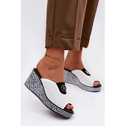Kožené nazouváky na platformě s ozdobou S.Barski LR61-7011 Bílé