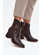 Skórzane Ażurowe Botki Damskie Na Słupku Zazoo 3647 Czekoladowe