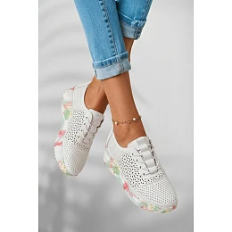 Dámské polobotky vyrobené z přírodní kůže jsou stylovým a pohodlným návrhem pro každodenní outfity. Vrchní část je ozdobena vzorem s otvory, který dodává lehkost a zajišťuje lepší cirkulaci vzduchu. Model má klasické šněrování, které umožňuje dobré přizpůsobení obuvi noze. Boty jsou umístěny na jemném platformě a mírném podpatku s ozdobným vzorem, což zdůrazňuje jejich módní charakter a zároveň zvyšuje pohodlí při chůzi. Díky lehké konstrukci jsou polobotky velmi pohodlné a skvěle se hodí pro každodenní použití. Jedná se o univerzální model, který se skvěle hodí k mnoha stylům – jak s džíny, tak s kalhotami či šaty. Při výběru velikosti se řiďte tabulkou velikostí.