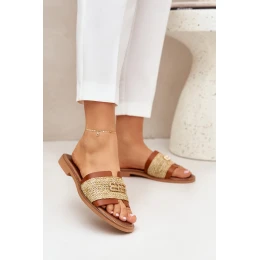 Kožené Pantofle S Dekorativním A Pletením Hnědé model 21684096 - Zazoo