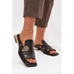 Kožené pantofle s zlatými ozdobami D&A model 22031927 Černé - S.Barski