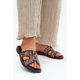 Kožené Ploché Pantofle S Vzorem Černé model 21697407 - Zazoo