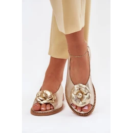 Skórzane Płaskie Sandały Z Ozdobą CheBello 4642 Złote