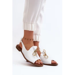 Zazoo 2898 Skórzane Płaskie Sandały Białe