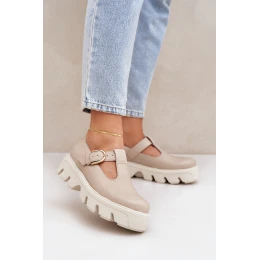 Kožené Polobotky S Přezkou model 21683956 Béžové - Zazoo