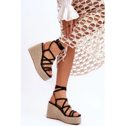 Idealne sandały na lato! Posiadają wysoki koturn oraz platformę ozdobione jutową plecionką. Posiadają odkryty, kwadratowy nosek. Sandałki są zapinane na długi, regulowany pasek ze sprzączką. Niezwykle miękka, wykonana z eko skóry wkładka jest bardzo wygodna w użytkowaniu nawet przez cały dzień. Te buty będą znakomitym dodatkiem do zwiewnej sukienki czy spódniczki. Przy wyborze rozmiaru prosimy kierować tabelą rozmiarów.