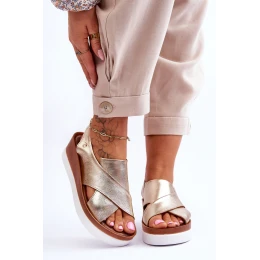 kožené sandály na klínu Zlaté model 21617433 - Zazoo