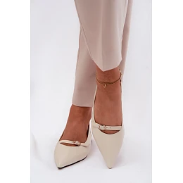 Kožené sandály na nízkém podpatku Maciejka K7449-22 Světle béžové