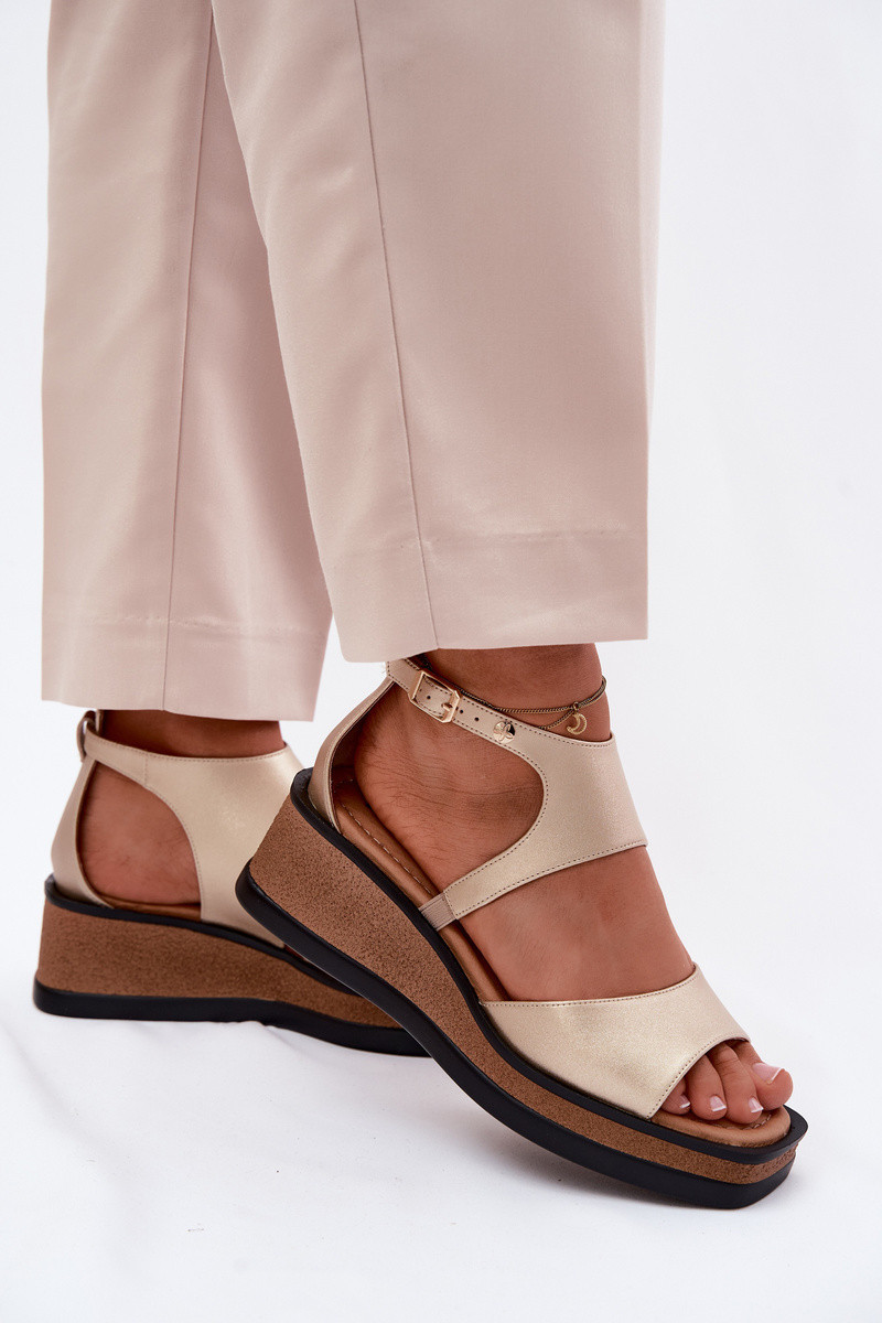 Kožené sandály na platformě Maciejka K7471-26 Zlaté