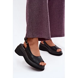 Kožené sandály na platformě model 22126064 Černé - VINCEZA