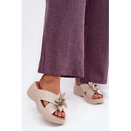 Kožené sandály na platformě s ozdobným květem Vinceza 41511 Béžové
