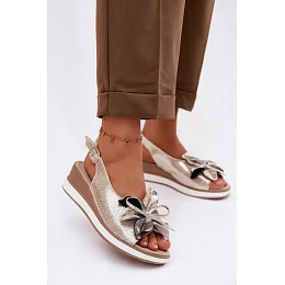 Kožené sandály na platformě s ozdobou model 22101402 Zlaté - S.Barski
