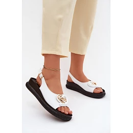 Kožené sandály na platformě s ozdobou model 22133571 Bílé - S.Barski