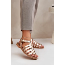 Kožené Sandály Na Plochém Podpatku Zazoo model 21682317 Zlaté - Boto