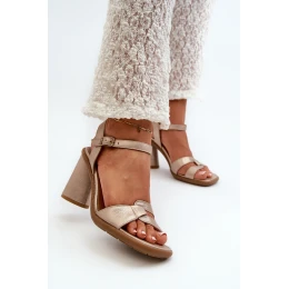 Skórzane Sandały Na Słupku Maciejka 06029-25 Złote