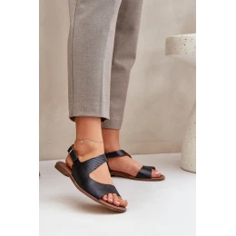 Skórzane Sandały Na Sprzączkę Z Tłoczeniem Lewski 3041 Czarne