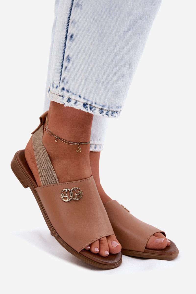 Kožené sandály se zlatým detailem Zazoo 40473 světle hnědé