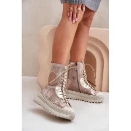 Skórzane Zamszowe Botki Na Platformie Ocieplane Maciejka 06565-04 Beżowe