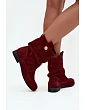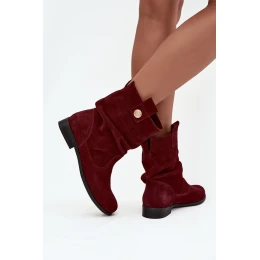 Skórzane Zamszowe Botki Damskie Z Marszczeniem Ocieplane Zazoo 4210 Bordowe