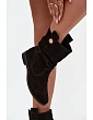 Botki damskie wykonane z naturalnego zamszu to propozycja łącząca elegancję i wygodę, idealna na sezon jesienno-zimowy. Miękka skóra w zamszowym wykończeniu prezentuje się wyjątkowo stylowo i jest przyjemna w dotyku, a dzięki swojej trwałości gwarantuje długie użytkowanie. Model osadzony na płaskim obcasie zapewnia komfort i stabilność podczas codziennego noszenia. Wsuwany fason ułatwia zakładanie i zdejmowanie butów, a wnętrze wyściełane kocem obuwniczym dba o ciepło i wygodę w chłodniejsze dni. Zaokrąglone noski nadają całości klasycznego, ponadczasowego charakteru, a subtelny, złoty detal umieszczony z boku cholewki stanowi elegancki akcent, który delikatnie wyróżnia model. To uniwersalne botki, które znakomicie sprawdzą się zarówno w casualowych zestawach, jak i w bardziej stylowych stylizacjach. Przy wyborze rozmiaru prosimy sugerować się tabelą rozmiarów.