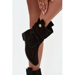 Skórzane Zamszowe Botki Damskie Z Marszczeniem Ocieplane Zazoo 4210 Czarne