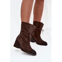 Kožené semišové dámské kotníkové boty na podpatku model 21744772 čokoládové - Zazoo