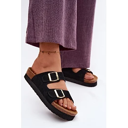 Kožené semišové dámské sandály na platformě s přezkami model 22130435 černé - VINCEZA