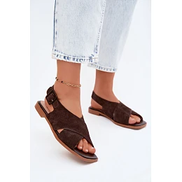 Kožené Semišové Dámské Sandály Na Ploché Podpatky D&A model 22133766 Čokoládové - S.Barski