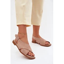 Kožené semišové dámské sandály na plochém podpatku D&A JC61-1001 Béžové