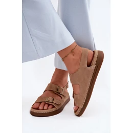 Kožené semišové dámské sandály s přezkami model 22125959 hnědé - VINCEZA