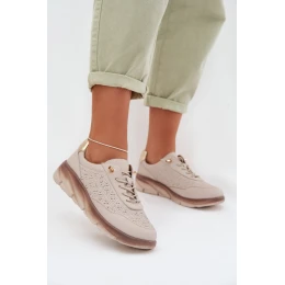 Kožené semišové dámské tenisky s otvory model 22026508 světle hnědé - SERGIO LEONE