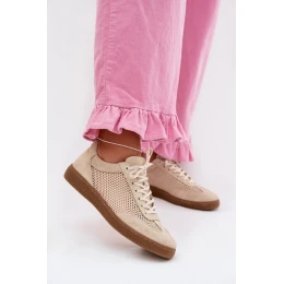 Kožené semišové dámské tenisky s síťovinou model 22027653 Béžové - Zazoo